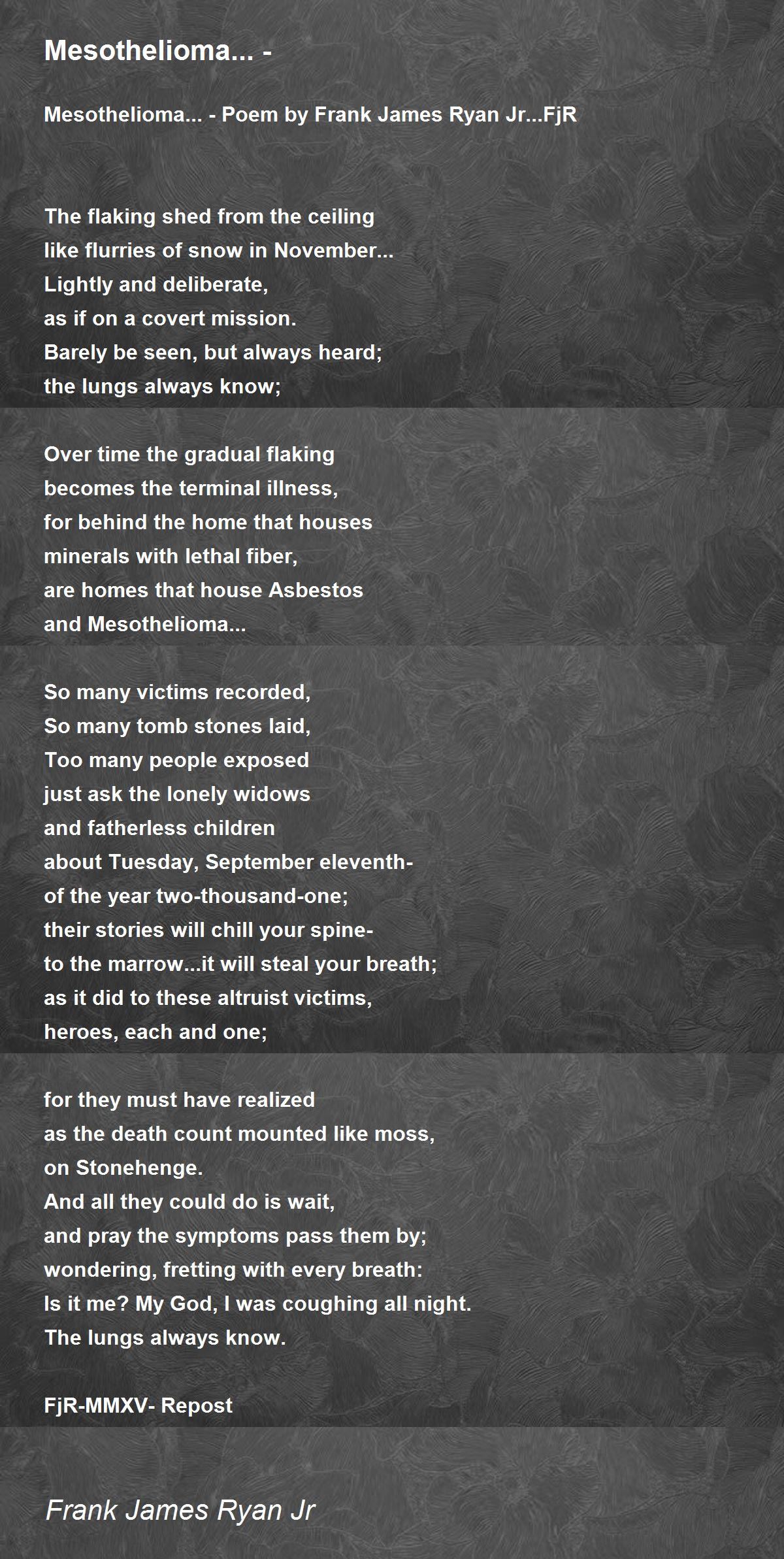 Mesothelioma Quote - You A Loved One Mesothelioma Meme - MyQuotes.org | Memes ... - Our free guide includes information on legal compensation, treatment options, and more.. Nov 01, 2018 · mesothelioma quote. I remember we would make our own lagging by dumping loose asbestos in a bucket and pouring water into it. Few are expected to live for five years beyond the initial diagnosis. The same goes for vitamin c (iv) therapy. Dietary changes can make a difference.